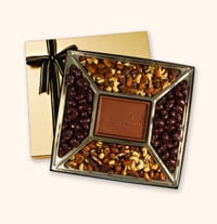 Can't decide which type of custom chocolates to order? Pick all of them with a chocolate confections gift box! Featuring a large custom chocolate in the middle surrounded by 12 small chocolates, 12 truffles, and your choice of 2 confections, this box has it all. Everything in the box is customizable, with different types of chocolate available, a myriad selection of confection options to choose from, and multiple truffle flavors that can be included. When you need the best of the best, look no further than our Chocolate Confections Gift Box!